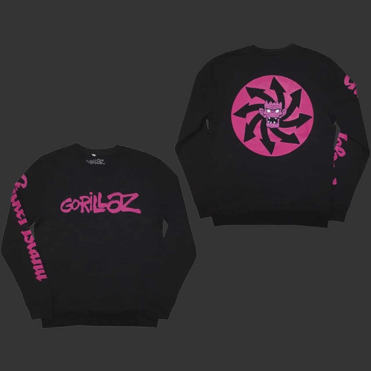 An official licensed Gorillaz Sweatshirt featuring the Craker Island Pazuzu Spiral design motif.