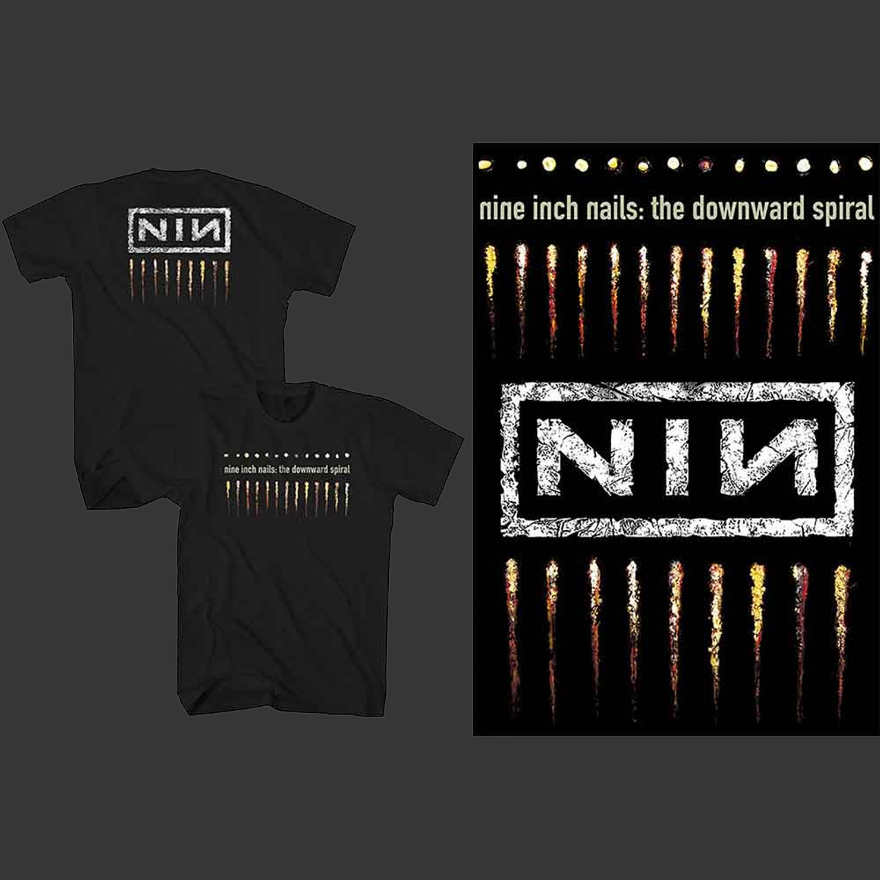 An official licensed Nine Inch Nails T-Shirt featuring the Downward Spiral design motif.